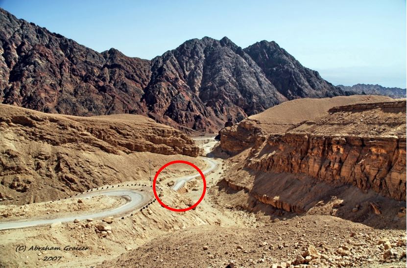 פתרון חידת פברואר, בצילום מרחוק של אברהם גרייצר נראים הכביש הישן והגשר (בתוך העיגול האדום).