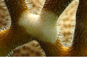 תמונות תקריב של אזור ההלבנה באלמוג האש. צילום: אסף זבולוני