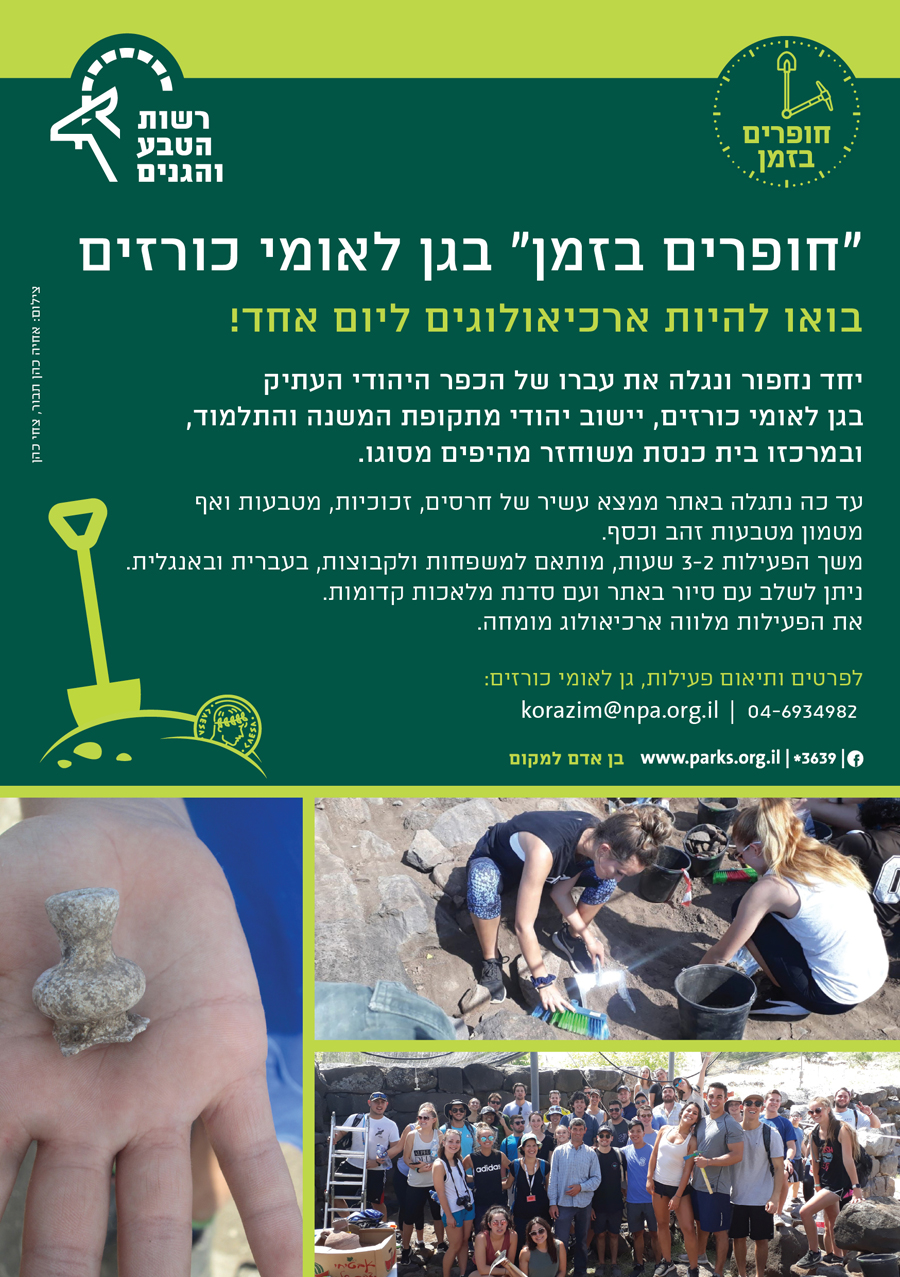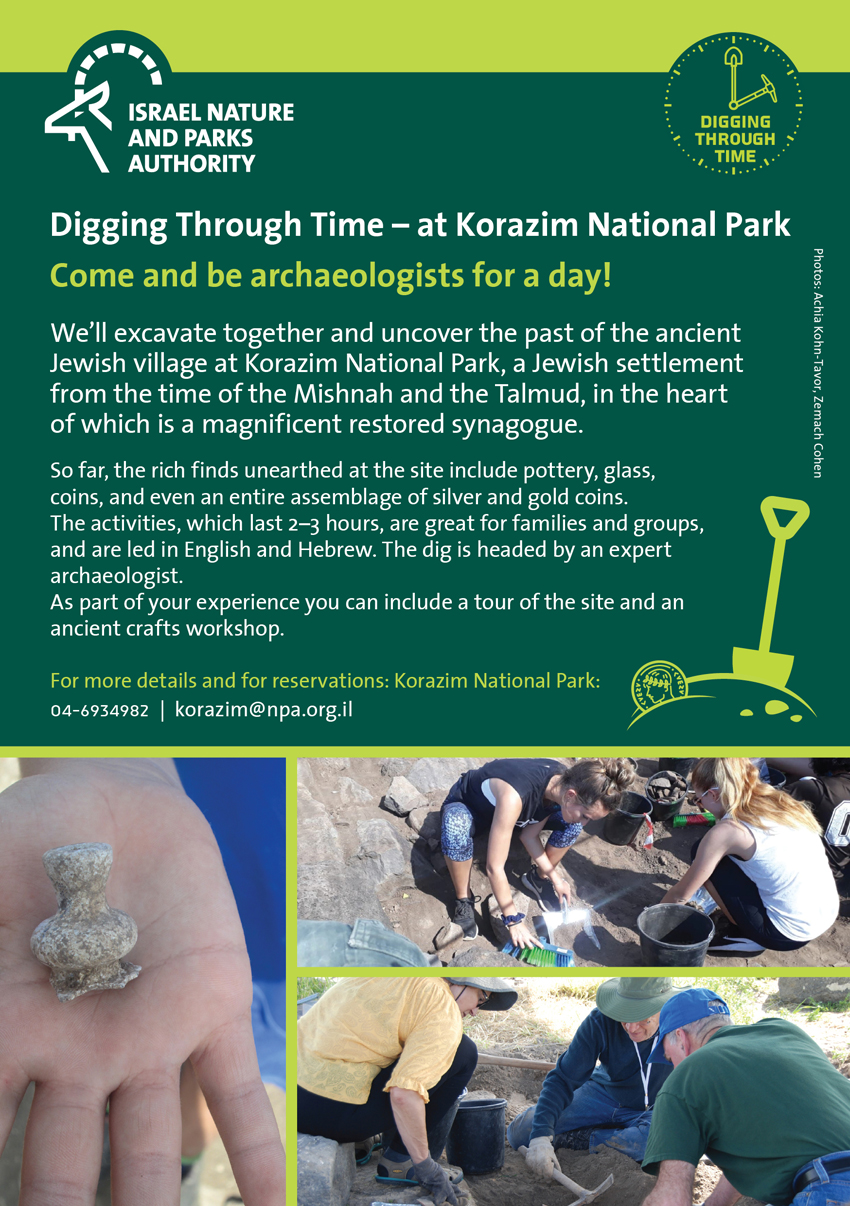 20/01/2019"חופרים בזמן"- גן לאומי כורזים מזמין אתכם לגעת בעבר, בואו להיות ארכיאולוגים ליום אחד!