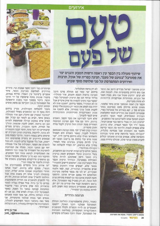 23/03/2015שיתוף פעולה בין הכפר עין ראפה לבין מרכז חינוך והסברה הרי יהודה , יצר את פסטיבל "טעם של פעם", חגיגה של אוכל מקומי, סיורים מודרכים, תרבות ומפגש מיוחד עם אנשי הכפר וסביבתו הטבעית.