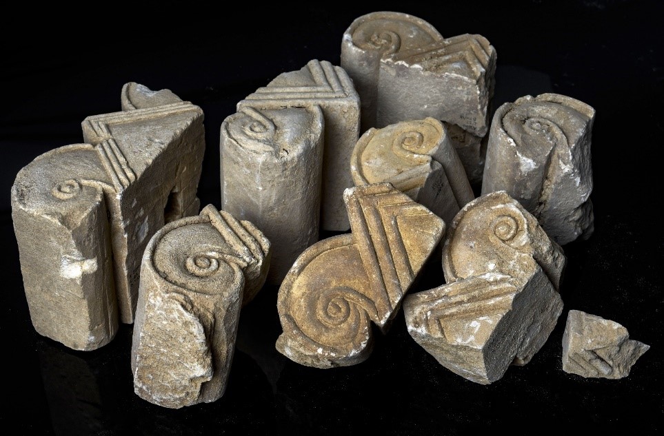 האוסף שנחשף כולל, בין היתר, שלוש כותרות-אבן שלמות בגודל בינוני ופריטים של חלונות מפוארים, שבהם שולבו מעקות. אלה הורכבו מעמודונים מסוגננים ועל גביהם סדרת כותרות בגודל זעיר בסגנון הפרוטו-איאולי.