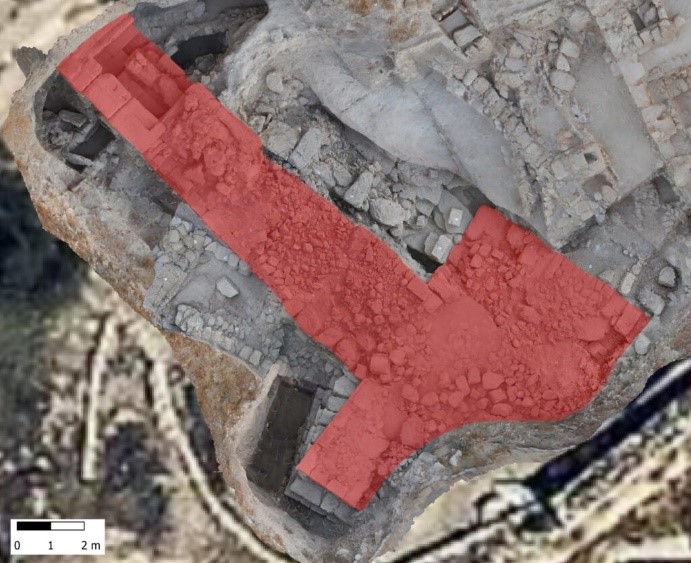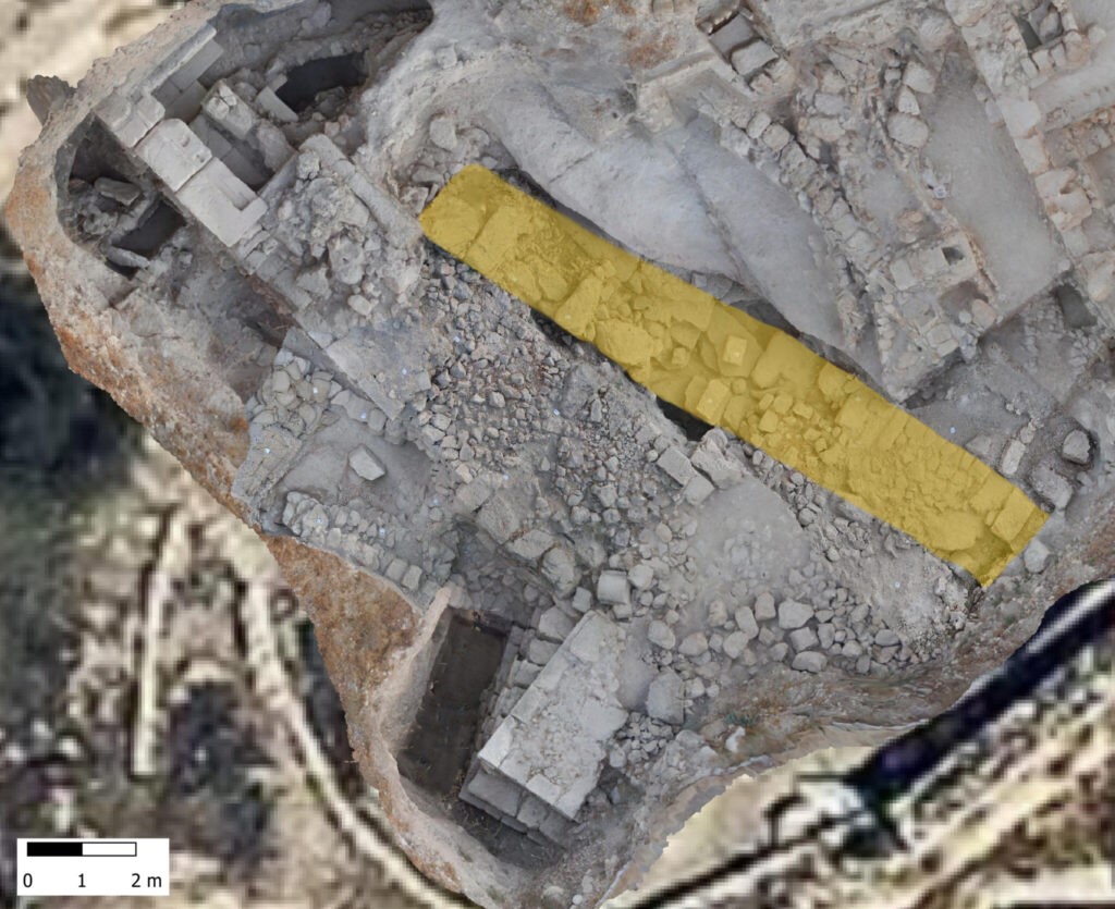 ה. החומה ההלניסטית (בצבע צהוב) (מאות 2-3 לפנה"ס) נחשפה מצפון מזרח לחומה הביזנטית. היא כוללת קיר מסיבי מאבני גזית בגודל 0.32X0.45X1.1 מ' ואבנים קטנות יותר המונחות על סלע האם החצוב כנדבך יסוד. ניתן להשוות את החומה לחומות אחרות מהתקופה ובעיקר לביצורי שומרון/סבסטיה (מאות 3-4 לפנה"ס).