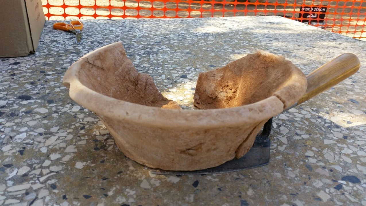במהלך החפירה נמצאו על הרצפה מטבע, ידית עצם של כלי קטן עם עיטור בחריטה, שבר שפה של קערה גדולה ועליו חריטה של מחצית צלב ועיגולים שהוטבעו בקנה וכן כלי שלם דמוי עציץ.