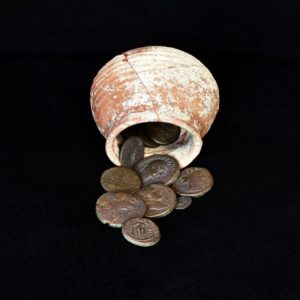 גילויו של מטמון מטבעות בתוך כלי קטן בסמוך לבית יצרן הנרות, מסייע בידי החוקרים לחזק את ההשערה כי חלק זה של הכפר, אם לא כולו, לרבות ביתו של יצרן הנרות, נעזבו בשלהי המאה הב' לסה"נ.