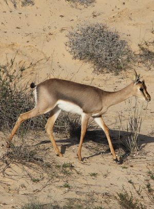 תמונות שמתעדות עדר צבאים בחולות זיקים, חשפו צביה שהייתה לפני כשש שנים בטיפול בבית החולים וכעת נושאת ברחמה עובר.