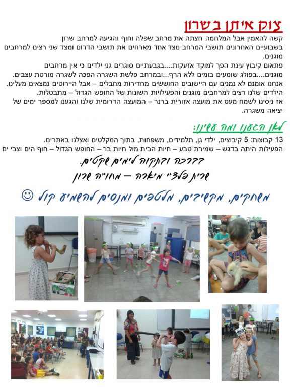 אנו מקווים שפעילות שכזו תעזור לילדים להירגע ולנוח מהשגרה הלא פשוטה שהם חווים ביום-יום.