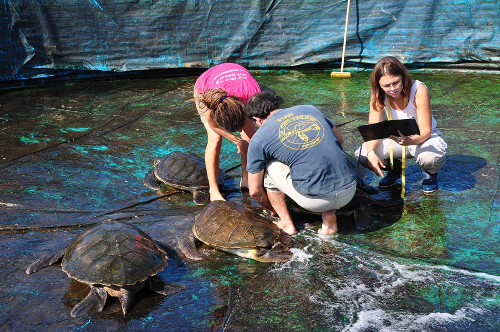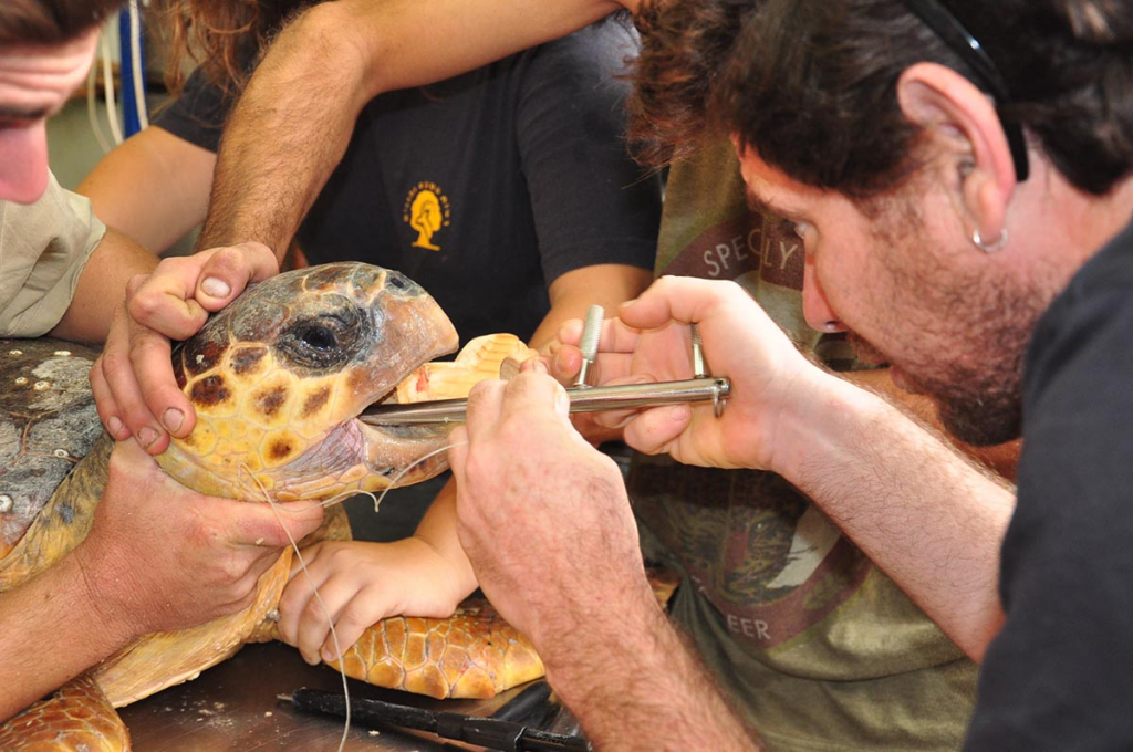 עצוב לראות צב ים גדול, בעל חיים עצמאי שרגיל לשחות מרחקים עצומים בחיפוש אחרי מזון בים הפתוח, מוגבל לבריכה קטנה שבה הוא אינו יכול לנוע כמעט. ואולם, אין ברירה – הצבים הפגועים שנפלטים לחוף מקבלים כאן טיפול מסור מאנשי הרשות וממתנדבים, ורובם חוזרים לים הפתוח אחרי השהייה בבית החולים. "אנו משחררים את כל הצבים חזרה לטבע, אלא אם אין ברירה", אומר יניב לוי, אקולוג צבי ים ומנהל המרכז. "להערכתי טופלו כאן במשך השנים כ-600 צבים. עד היום, רק שלושה מהם אי אפשר היה להחזיר לטבע. אחת מהם נמצאת היום באקווריום באיסטנבול ושני האחרים הם צבי ים ירוקים שצורפו לגרעין הרבייה".