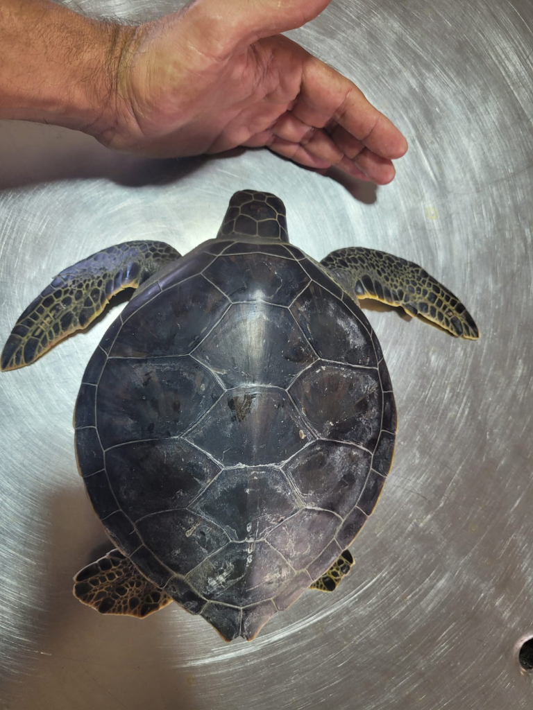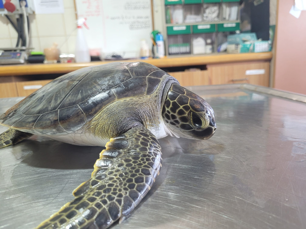 גיא אבגי מטפל ראשי במרכז הצלה לצבי ים של רשות הטבע והגנים: " מדובר בצב ים ירוק צעיר שהגיע למרכז ההצלה כשהוא פצוע, בדקנו את הצב ונתנו לו טיפול ראשוני שכלל אנטיביוטיקה ונוזלים. אני מקווה שלא יתפתח זיהום כתוצאה מההסתבכות בפלסטיק.