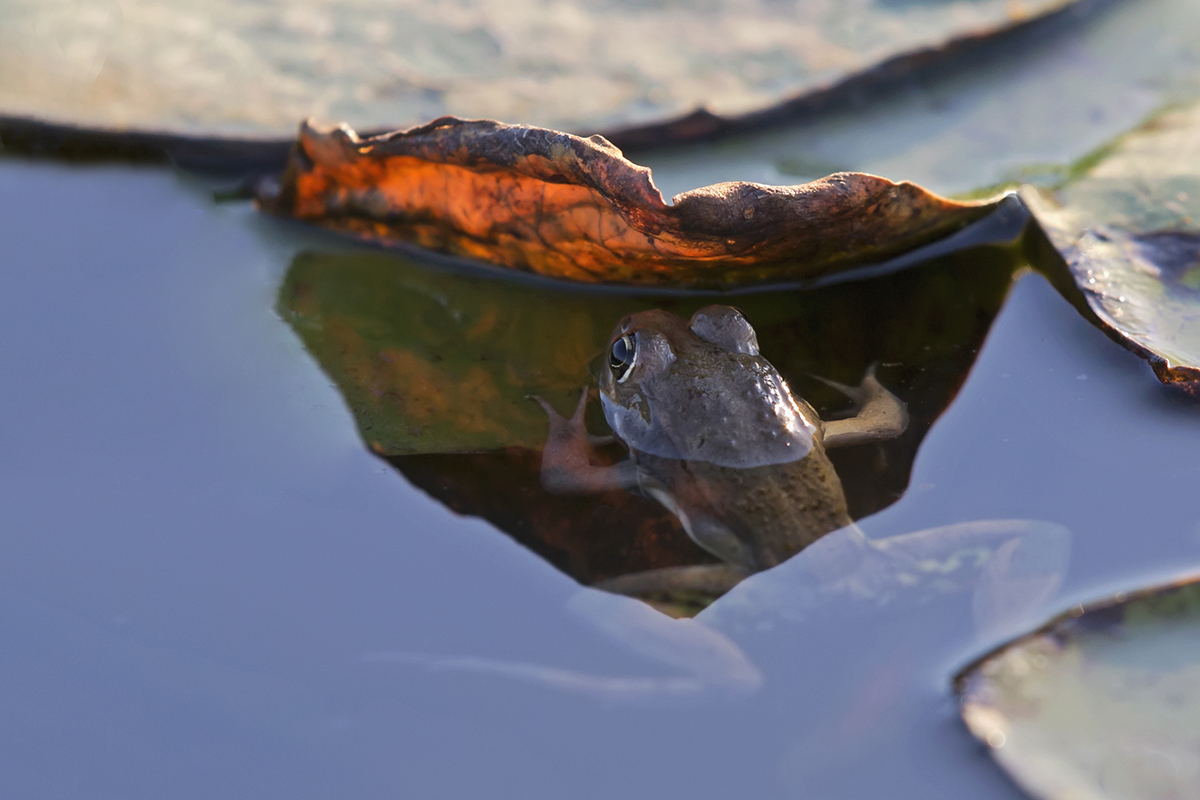 שעת כושר – צפרדע הנחלים מסתתרת כדי לצוד בינות לצמחיית המים