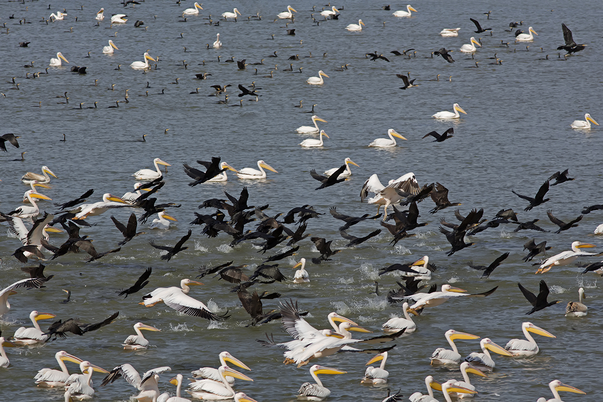 שחור ולבן – שקנאים וקורמרנים. עקב הצטמצמות בתי הגידול הטבעיים מתקבצים עופות המים במאגרי מים מלאכותיים