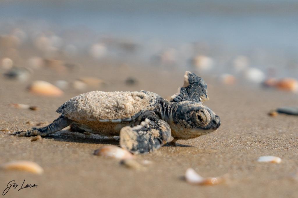 01/09/2022פקח רשות הטבע והגנים גיא לויאן פתח את הקן וסייע לשני האבקועים שלא יצאו עצמאית מתוך 31 שהוטלו בקן לצאת מהקן ולשוב לים בחוף מכמורת.