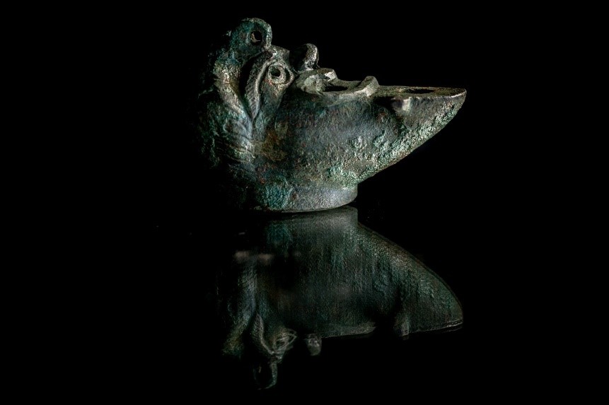 14/06/2021נר ברונזה "למזל", המציג חצי פרצוף, התגלה בחפירת דרך עולי הרגל בעיר-דוד