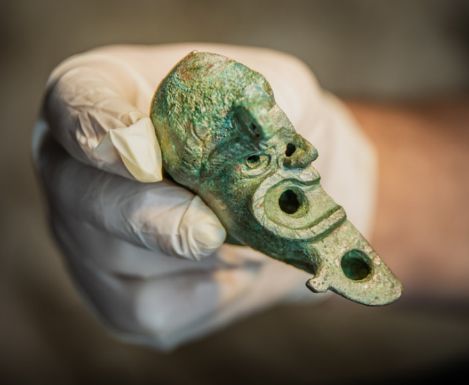 נר ברונזה נדיר, מעוצב כחצי פרצוף גרוטסקי, התגלה לאחרונה בחפירות רשות העתיקות בעיר-דוד שבגן לאומי סובב חומות ירושלים.