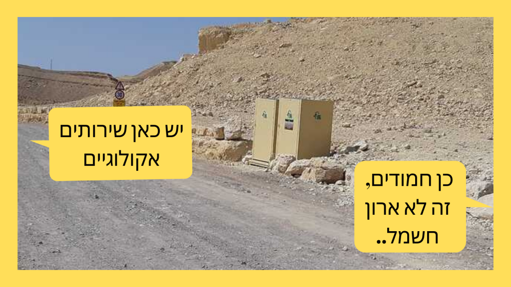אבל גם מה שכן ימתין לכם בחניונים אלו בהחלט ישדרג את הטיול שלכם במדבר: מיכלי המים ובהם מים טריים למילוי בקבוקים, שירותי נסורת, מחסות ללינה ומתקנים להבערת מדורות, והכי כיף – לינה ללא תשלום. כמו שישראלים אוהבים.