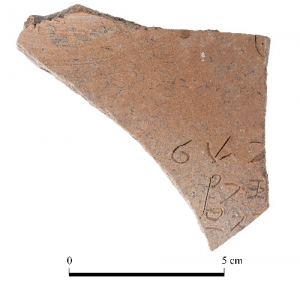 אחד הממצאים החשובים ביותר שנמצאו במקדש היא כתובת כנענית בת שלוש שורות, שנחרטה על כלי חרס לפני הצריפה, ממנה שרדו תשע אותיות. בשורה האמצעית כתובה המילה "ספר". הפעם האחרונה שבה נתגלתה כתובת כנענית הייתה לפני כ-40 שנה. "לכתובת חשיבות מיוחדת מאוד לתולדות התפתחות כתב האל"ף-בי"ת, כי מופיעה כאן האות סמ"ך הקדומה ביותר בעולם. האות הזאת לא הופיעה עד כה באף אחת מהכתובות הכנעניות שנתגלו בארץ או בחצי האי סיני", מציין פרופ' גרפינקל.