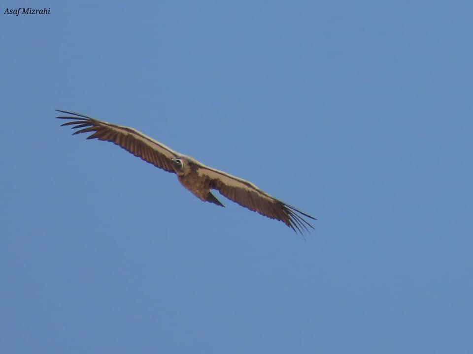 29/04/2021ב- 29.4.21 צילם פקח רשות הטבע והגנים אסף מזרחי נשר לבן גב (Gyps africanus - White Backed Vulture) מעל נחל אוג בצפון ים המלח, מדובר בתצפית ראשונה לישראל ובין היחידות במערב הפלארקטי.