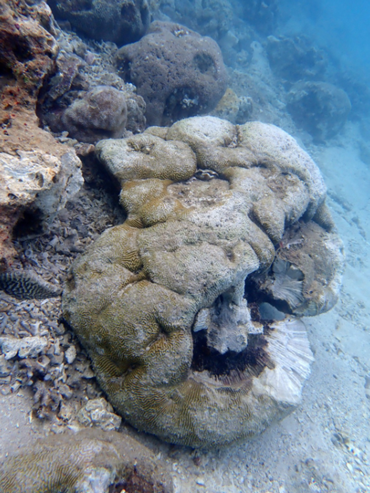 הנזק לשוניות הרדודות בולט מאוד לעין. אלמוגים רבים, גדולים מאוד, שגילם מוערך בעשרות שנים, נעקרו ממקומם, ולא רק אלמוגים אלא גם מקטעי שונית שלמים. בחוף הדרומי של אילת, בלטי שונית גדולים שקוטרם מספר מטרים התהפכו. הגלים טילטלו על הקרקעית את שברי השונית והאלמוגים, כמו גם אלמנטים מלאכותיים שנסחפו מהחופים, והטיחו אותם על אזורים נוספים בשונית וכך נפגעו גם אלמוגים נוספים. אלמוגים רבים, ענקיים ואף מקטעי שונית נזרקו אל החוף ע"י הגלים.