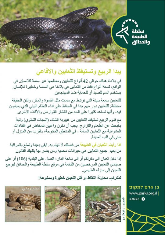מצורף דף הסברה בשפה הערבית یبدا الربيع وتستيقظ الثعابين والافاعي