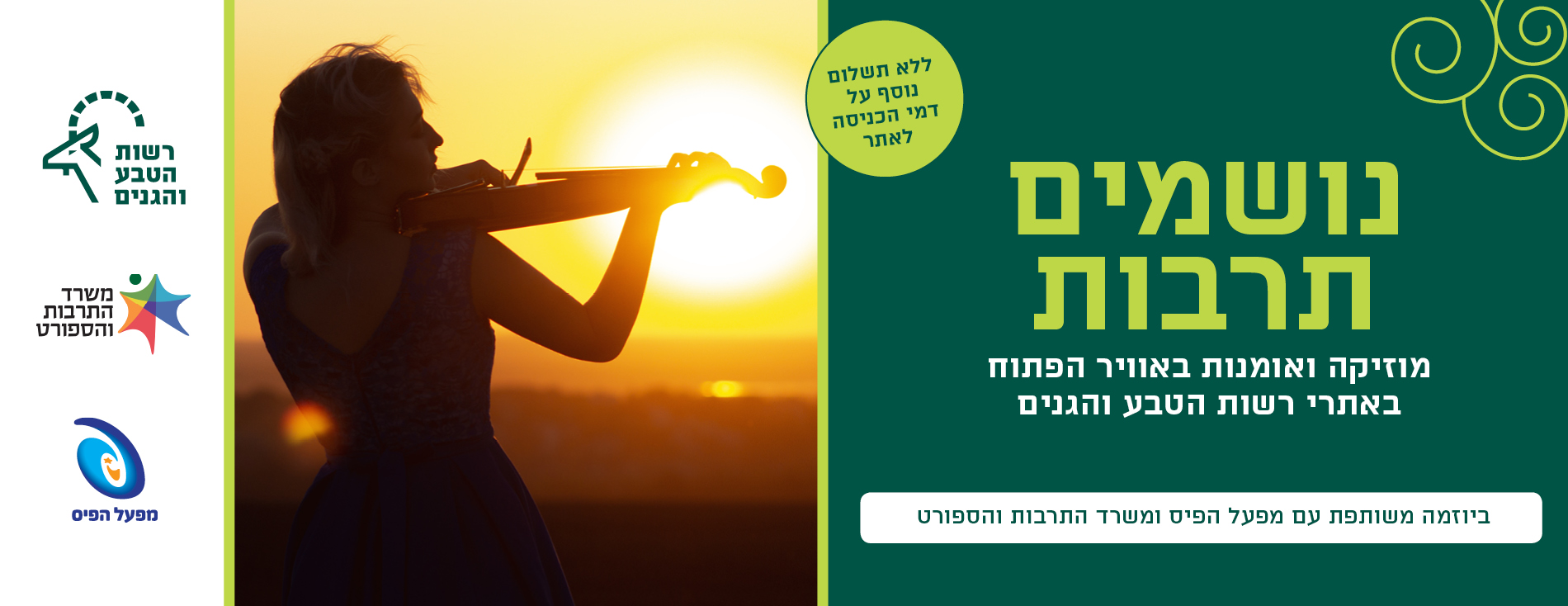 04/03/2021לאחר שיתוף הפעולה המוצלח בקיץ: מפעל הפיס ורשות הטבע והגנים משחזרים את יוזמת "נושמים תרבות" בפסח הקרוב ויעלו מופעים לכל המשפחה של מיטב האמנים בגנים הלאומיים בישראל