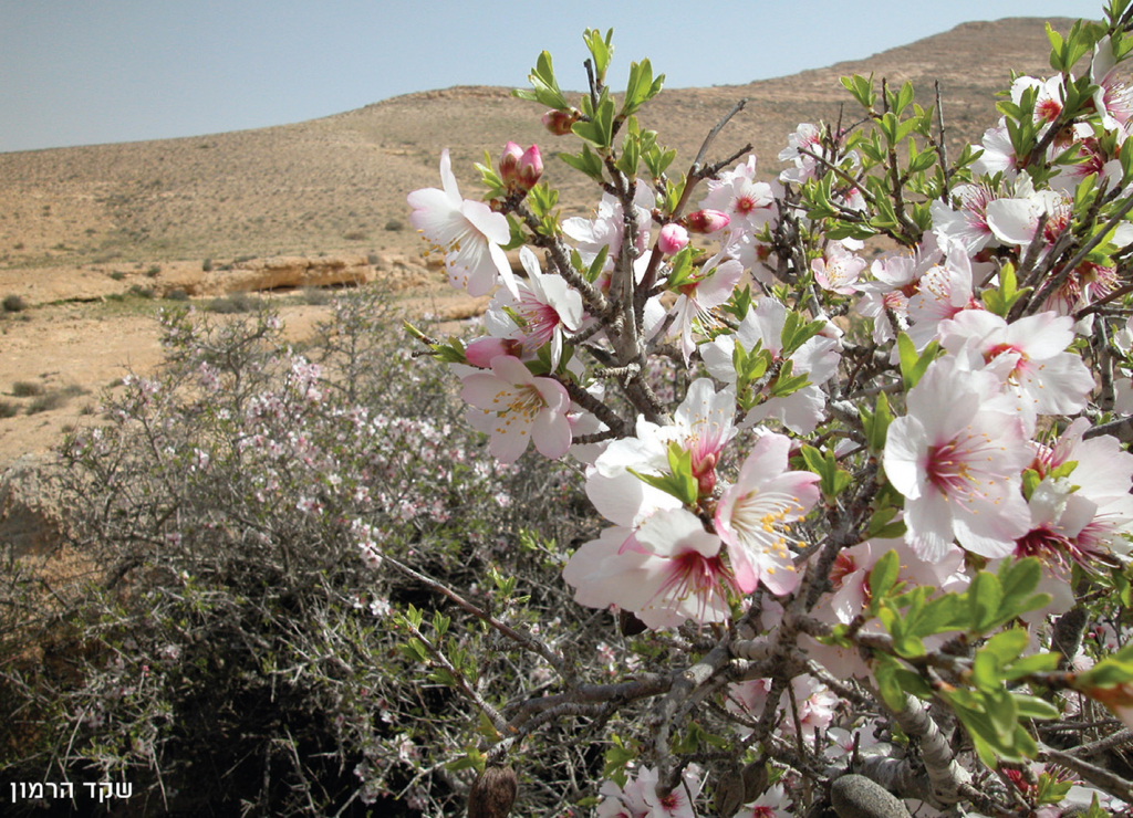 כאשר אבינעם דנין ז"ל גילה את עצי השקד בהר הנגב, הוא סבר שאלה נציגיו של שקד קטן־עלים. מאוחר יותר התברר שזהו מין בפני עצמו – שקד הרמון – והנה, סוף־סוף זכינו גם אנחנו במין עץ אנדמי לישראל. ההערכה היא כי מספרם של עצי שקד הרמון בהר הנגב אינו עולה על 200 פרטים. שקד הרמון צומח רק ביובלים העיליים של נחל לוץ ושל נחל אלות. בסוף פברואר מתכסים העצים בשמלת פרחים מרהיבה מאין כמותה. האבקנים והבסיסים של עלי הכותרת צבועים בוורוד עז. הפרחים הצעירים ורדרדים, והם מבהירים והולכים ככל שהפרח מתבגר. לכל אלה מצטרפים הניחוח הבשום שמפיצים הפרחים וזמזום החרקים, המתנפלים בשקיקה על הצוף העשיר.