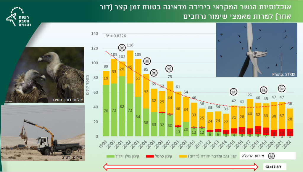 בתוך כך, מעבר לנתונים שקיימים בדוח העשור המפרטים נתונים ומגמות עד שנת 2020 רשות הטבע והגנים מדווחת במפגש העיתונאים השנתי לסיכום שנת 2022 על נתונים נוספים הקשורים לאוכלוסיית הנשרים בישראל.