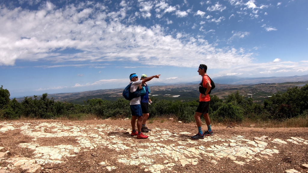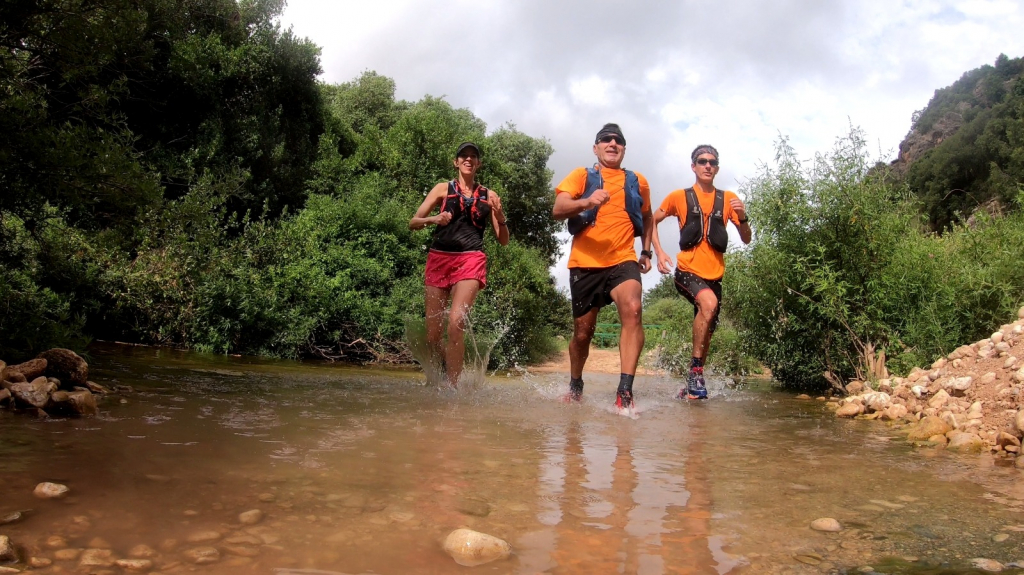 לאחר מילוי מים בנקודת מים מוסדרת הכוללת ברזי מים בפארק גורן, רם, רונן, רעות ושלומי ירדו חזרה אל ערוץ נחל כזיב השופע במצוקים עשירים בכוכים ומערות, חלקם כוללים עדויות למגורי אדם בתקופות קדומות והמשיכו בריצה רציפה עד עין טמיר. ההגעה לנביעה הבוקעת מתוך נקבה חצובה בסלע באפיק נחל כזיב בשעה שמזג האוויר התחמם, זימנה אפשרות לעצירה קצרה להתרעננות ושכשוך במים בתזמון נפלא. מכאן, הריצה נמשכה באופן רציף בהמשך הנחל עד לנקודה בה השביל מתפצל ועולה בעלייה תלולה לכיוון היישוב אבירים. לאחר השלמת הטיפוס ומילוי מים בנקודת מילוי מים בחניון אבירים, נמשך המסע בשביל היורד עד "גשר אלקוש" וממנו חזרה לנחל כזיב העובר בסמוך למס' מעיינות בתחום שמורת טבע הר מירון עד לעצירת ריענון בעין חותם, שבשונה מהמעיינות האחרים, נובע מתוך מערה וקדוש לעדה הדרוזית ולתושבי חורפיש המשכו של המסלול בסמוך לנחל נרייה בטיפוס תלול בתוך חורש טבעי צפוף ומוצל עד לנקודת הסיום של המסלול שתוכנן ליום הראשון בחניון לילה בחורבת חוממה, הממוקם למרגלות פסגת הר מירון ומהווה נקודת יציאה לשביל הפסגה להר מירון, שהוא גם חלק משביל ישראל.