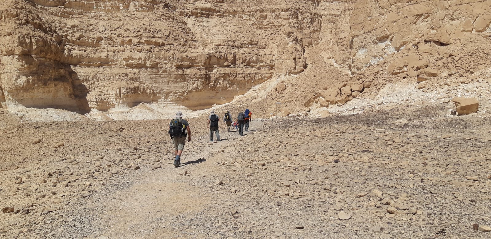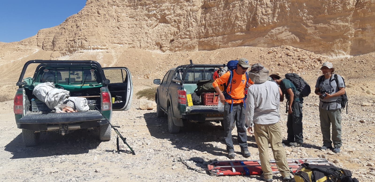 14/07/2019ביום ו' (12.7) בשעות הבוקר, הגיע דיווח ממטיילים בערבה התיכונה על עדר יעלים תקוע באחד הגבים בנחל ורדית, ביניהם גדי פצוע ברגלו.