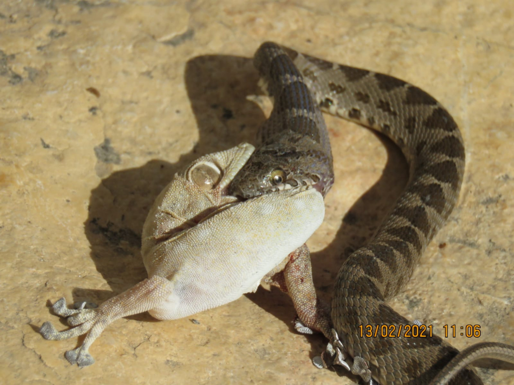 מאבק בין נחש ללטאה שהסתיים בהפתעה
