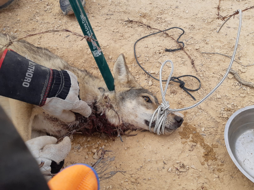 זאב שנמלט מניסיון ציד נתפס בגדר יישוב ונפצע קשה מאוד, ניצל בזכות חילוץ וטיפול פקחי רשות הטבע והגנים לאחר טיפול מורכב שנמשך 3 חודשים בבית חולים לחיות בר הושב לטבע.