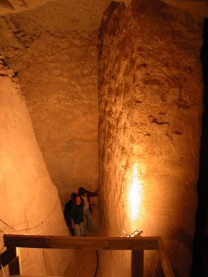 במאגר המים נראים קירות ישרים. הם נבנו לשמש קירות תמך בתקרה לאחר חציבת המאגר, ואפשר לראות היטב את הטיח ואת סימני האצבעות של הטייחים.