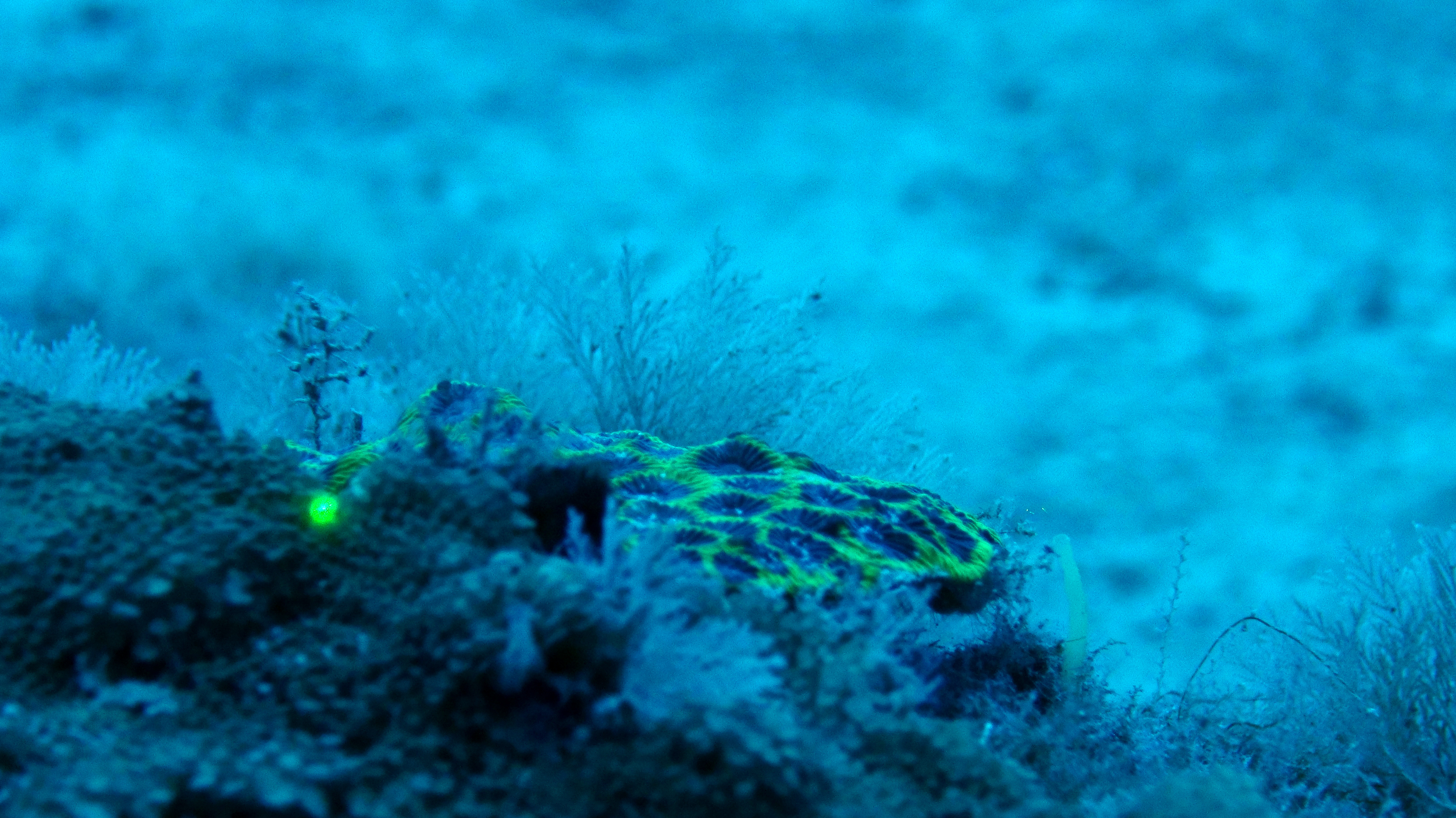 זהירה של אלמוג אבן ללא תאורה מלאכותית בעומק 112 מ' מול חוף הנסיכה