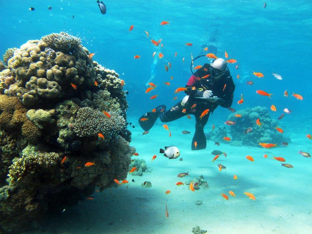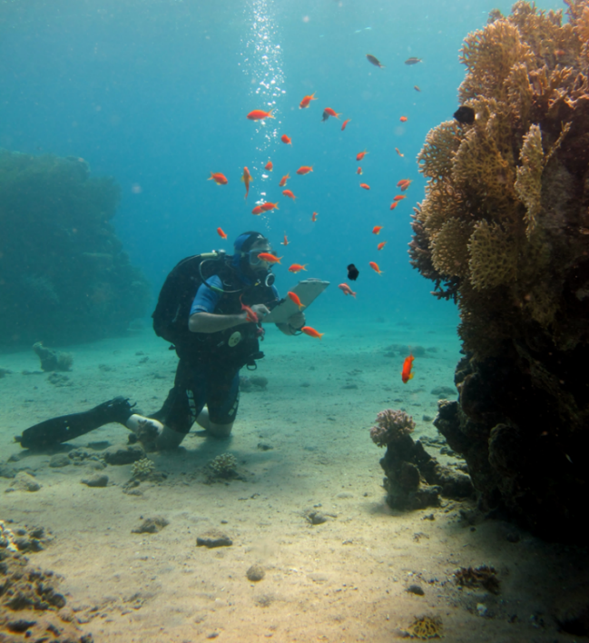 צולל מבצע סקר דגים באתר הנסיכה