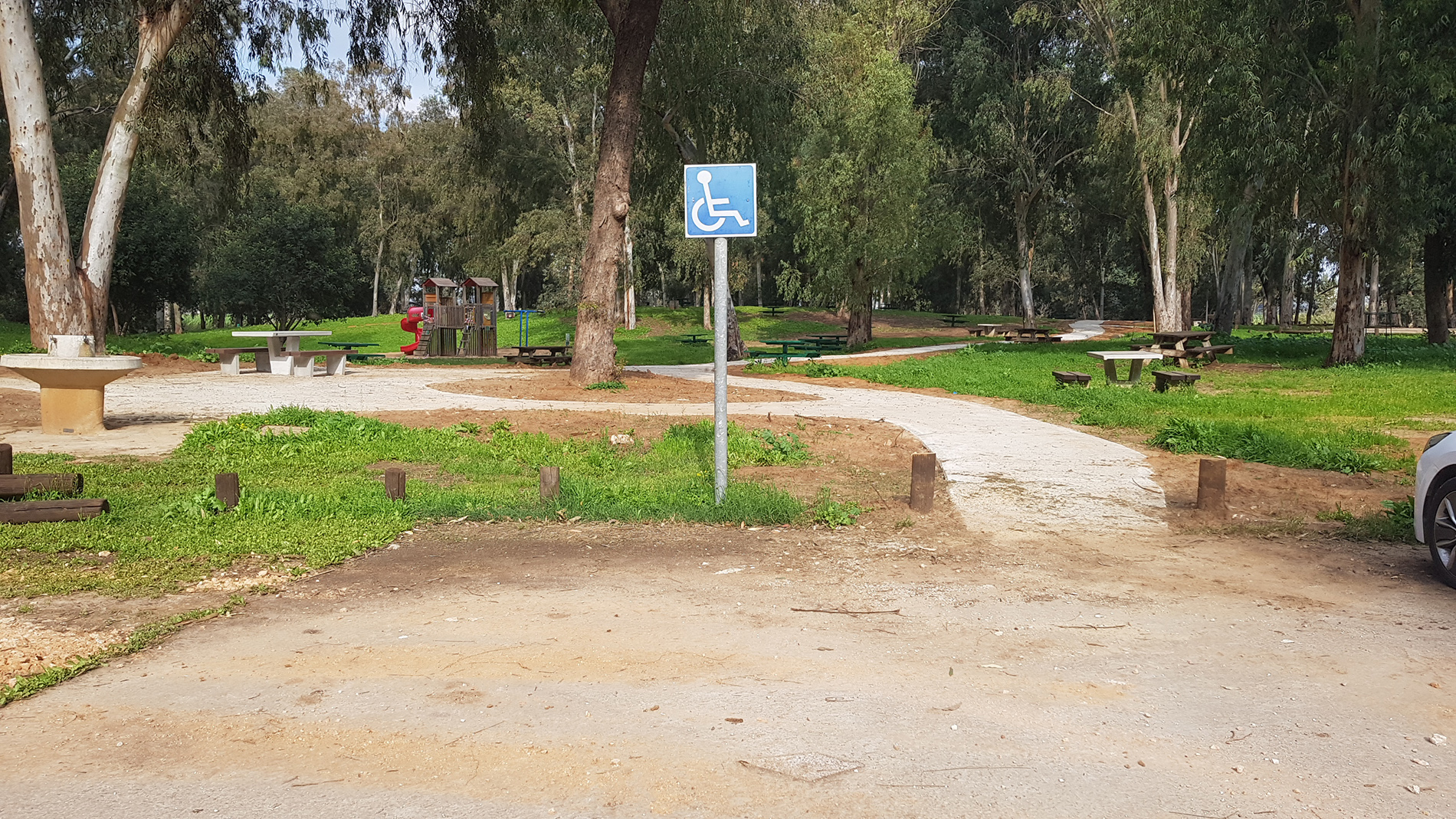 • הונגשו חניה, שביל בטון, בתי שימוש, פינות פיקניק על משטחי בטון, מאחזי יד במדרגות ושילוט הכוונה וזיהוי.